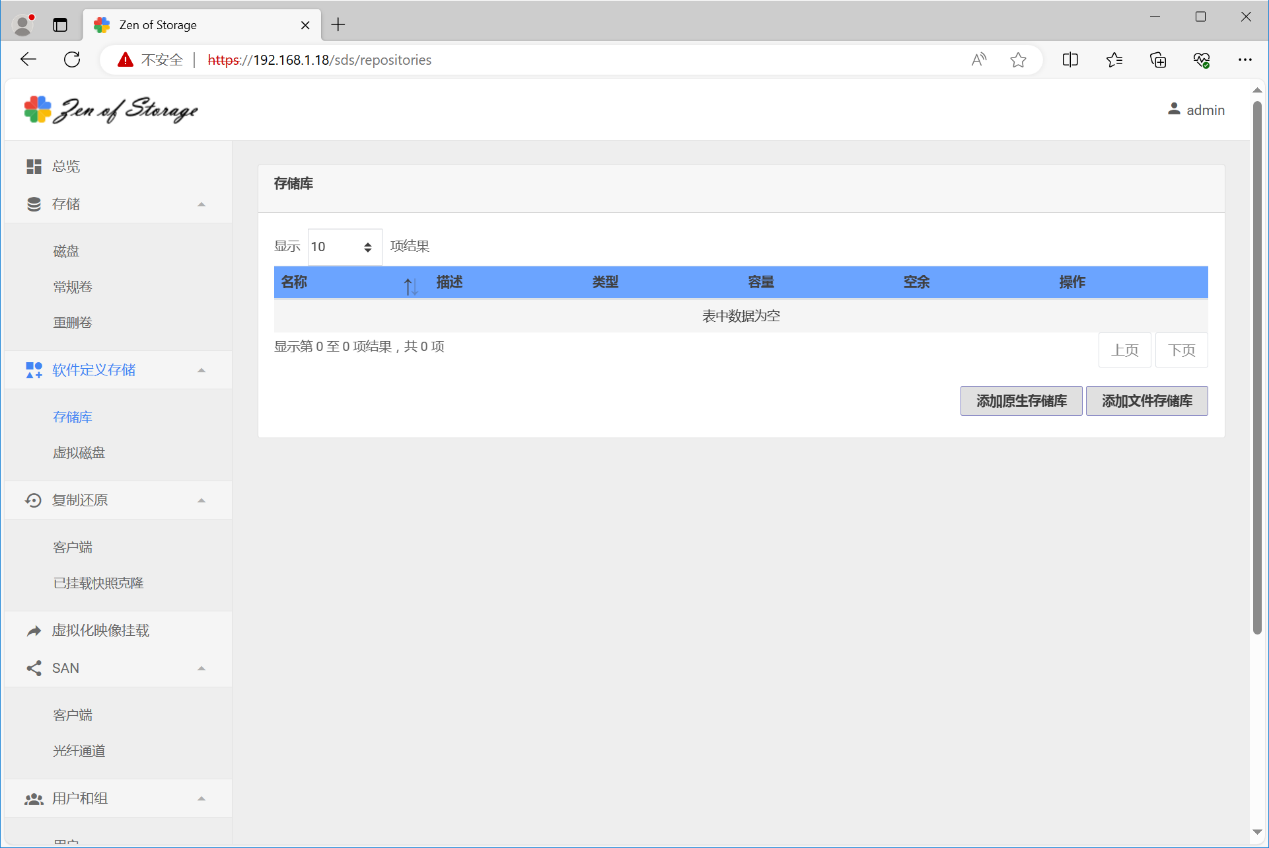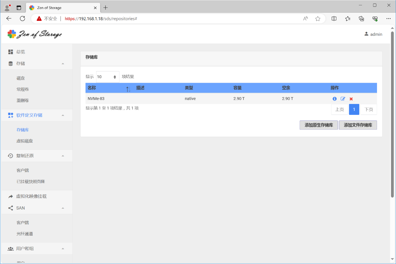 存储库是虚拟磁盘的存储空间,ZenStor目前支持以下类型的存储库;原生类型和文件类型。