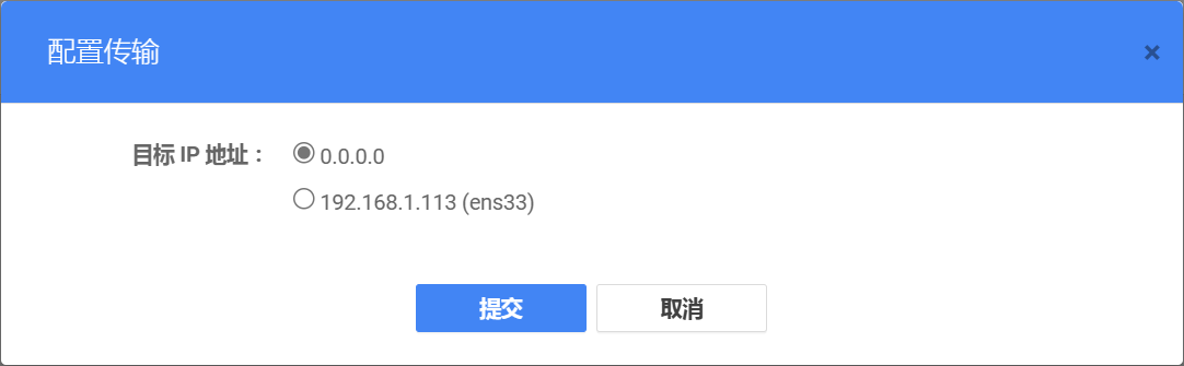 此处地址设置为0.0.0.0时,客户端会以注册时使用的IP地址为复制目标地址。如果设置成其他地址,那么客户端会以此地址为复制目标地址。
