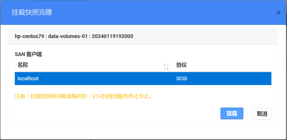 快照克隆试用完后,可以从已挂载快照克隆页面删除。