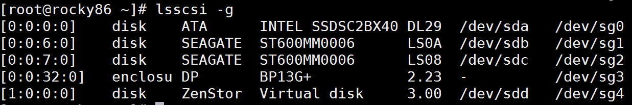 在相应的SAN客户端系统里,可以看到挂载的快照克隆盘。此处是厂商为ZenStor的SCSI盘 /dev/sdd。