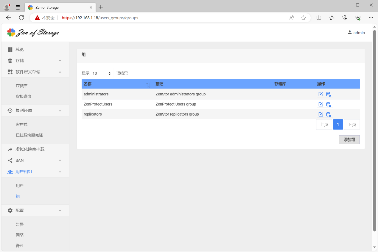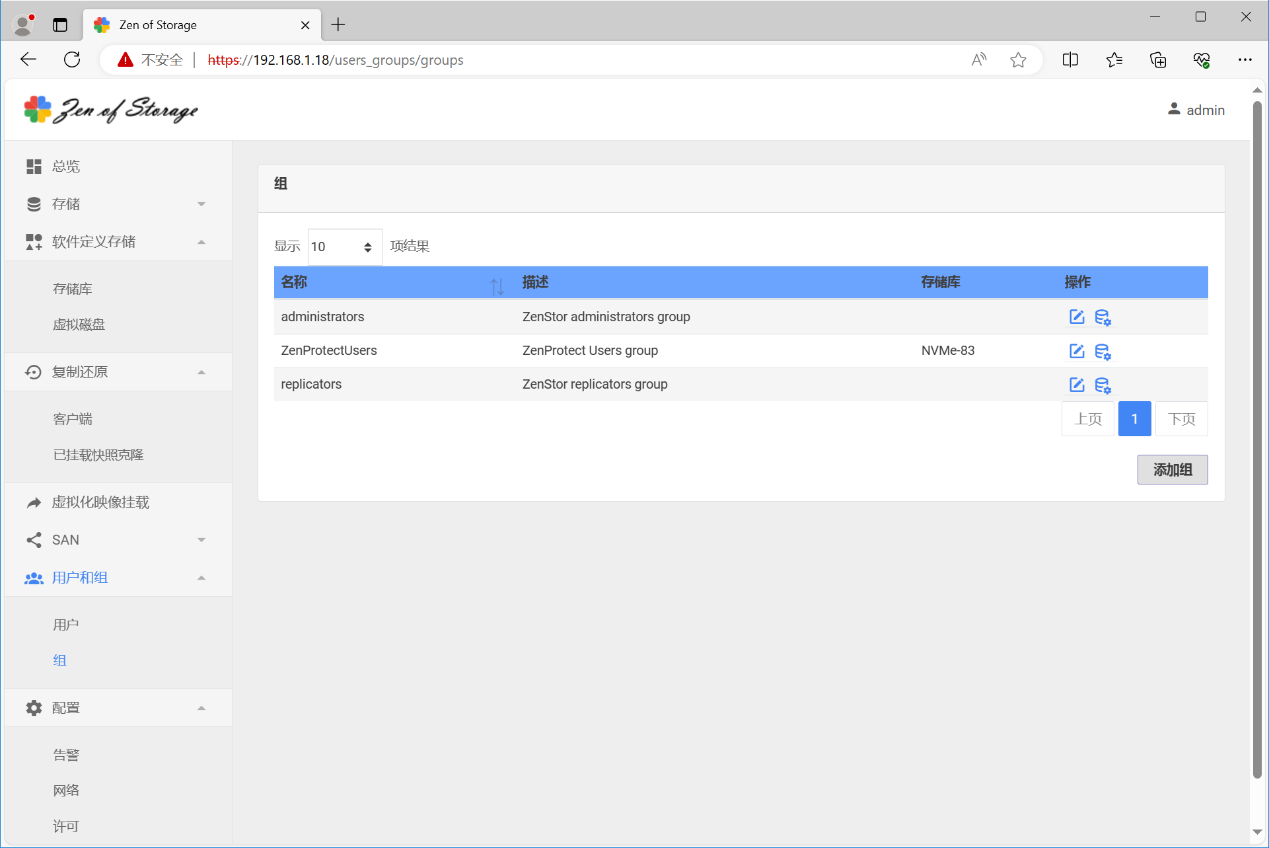 ZenStor的用户管理同时提供对ZenProtect的支持。