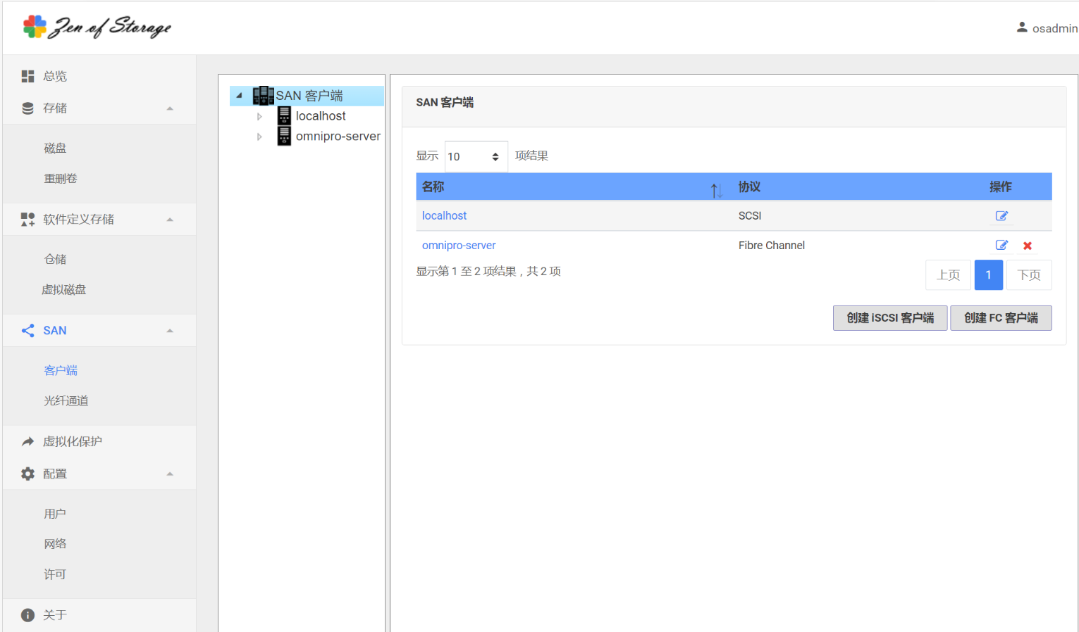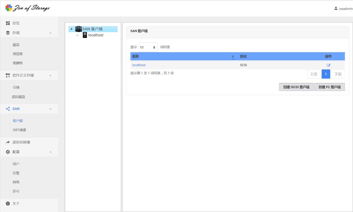 ZenStor除了支持iSCSI,FC等协议,默认会创建一个localhost的本地SCSI直连的客户端。