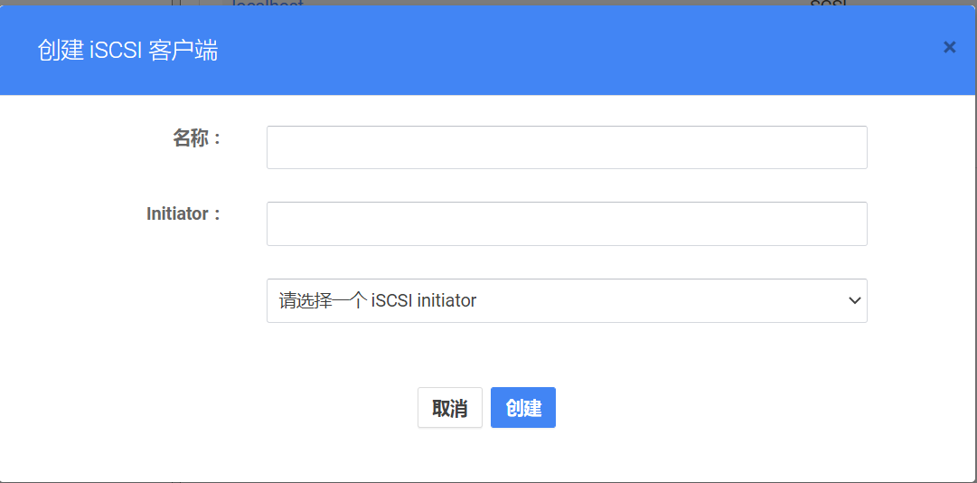 点击“创建iSCSI客户端”按钮进入创建iSCSI客户端对话框。